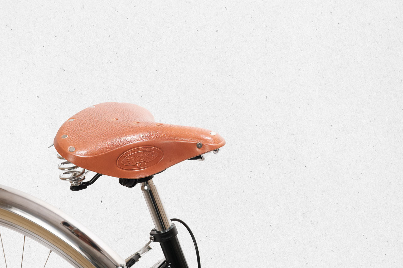 - Cuir Brooks – 659€ : Selle et poignées en cuir Brooks, sonnette en laiton