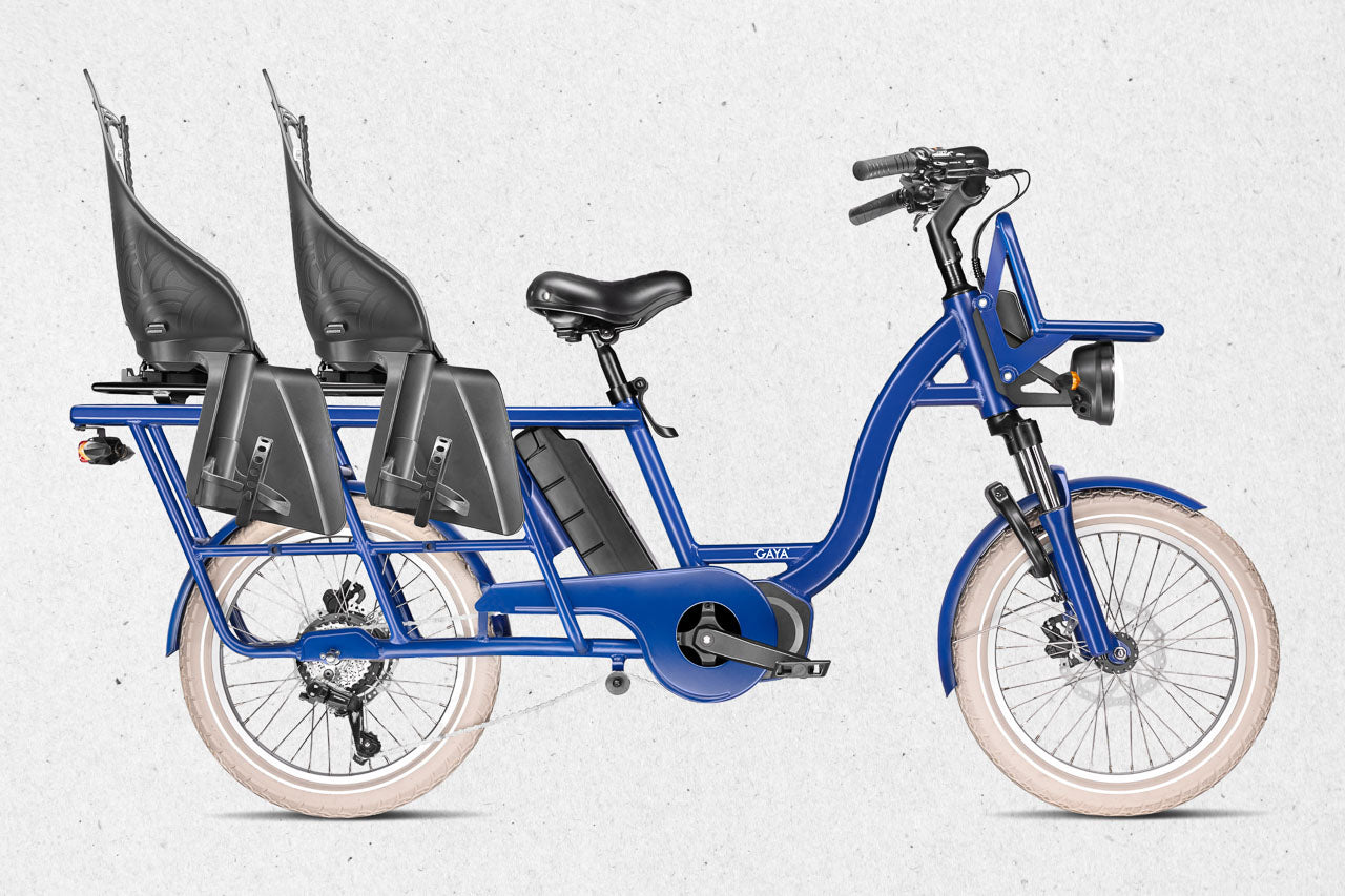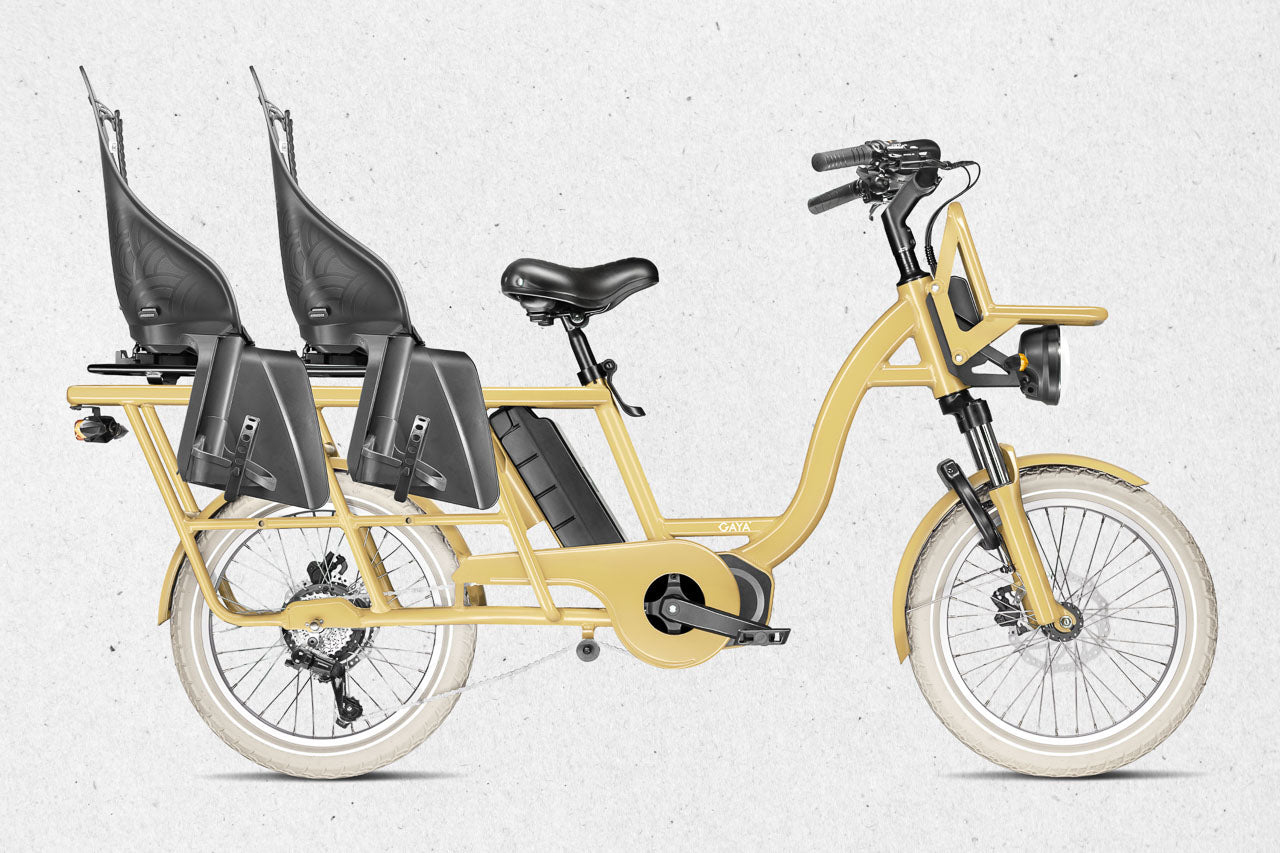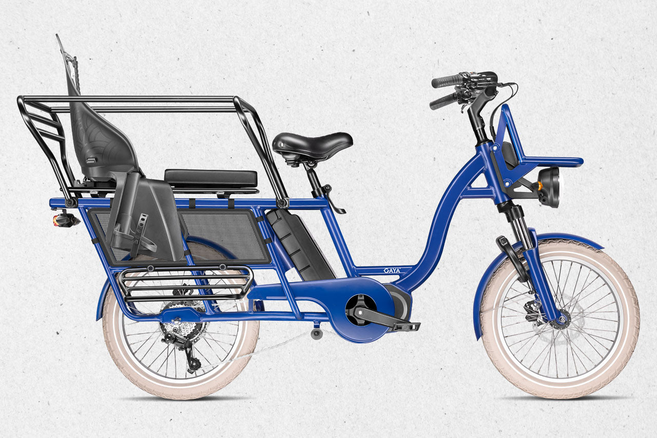 Le Gaya Original – version Longtail est un vélo cargo électrique pensé pour les familles urbaines, les trajets du quotidien et les utilisateurs qui cherchent une alternative fiable à la voiture. Avec son format longtail, sa capacité de charge optimisée et son confort renforcé, il s’impose comme l’un des meilleurs vélos électriques utilitaires sur le marché.