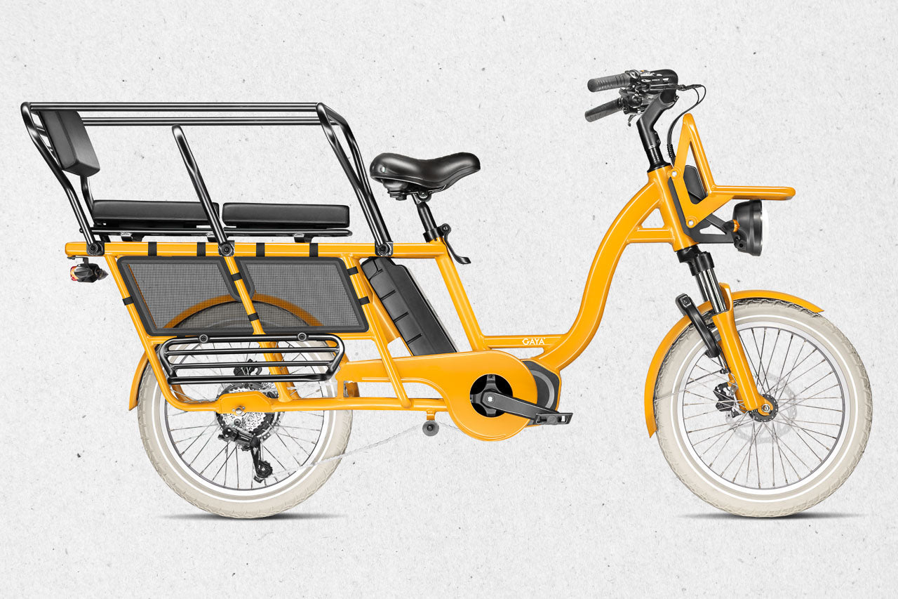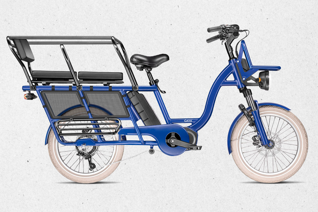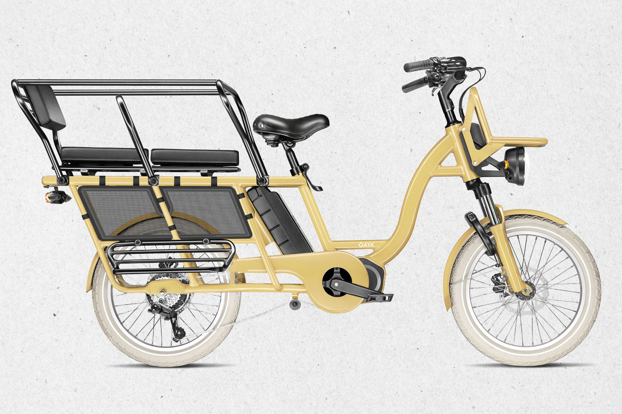 Le Gaya Original – version Longtail est un vélo cargo électrique pensé pour les familles urbaines, les trajets du quotidien et les utilisateurs qui cherchent une alternative fiable à la voiture. Avec son format longtail, sa capacité de charge optimisée et son confort renforcé, il s’impose comme l’un des meilleurs vélos électriques utilitaires sur le marché.